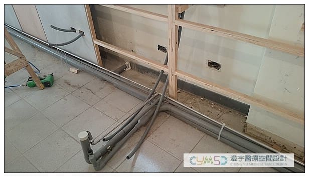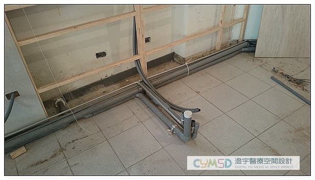 因牙科診所包含的器械管路複雜 , 若在結構樓板施作時 , 未將 所需的 進排水/儀器用電及氣體管路預先埋置, 則必須在後期施作時 , 將所有管路予以包覆或隔離 .