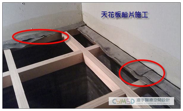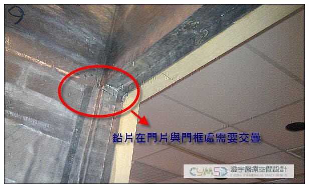 門片可作成內開或外開方式,但須注意門框鉛板與門板鉛版需有交疊部分,電源插座的底部,也須貼上鉛片,避免X光滲漏。另在門片上可加裝置透明鉛玻璃,作為檢視病人狀況使用,注意鉛玻與鉛版同樣需有交疊部分。