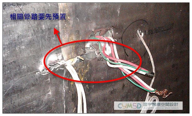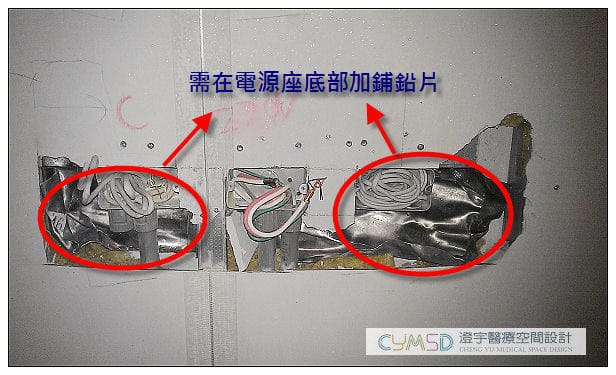 X 光機控制器需固定於X 光室外牆上,設備機器本身,必須有單獨的迴路,若環口數位X光機與根尖片X光機同置一室,需有切換開關,不能同時操作兩種機器。另外X光照射啟動開關須與門框上的磁簧微動開關串聯連動。 另外需特別提醒業主: 最好在裝修前已決定好廠牌機種,方便後續的管路預留配置,以達到管路的隱藏或美化工程。